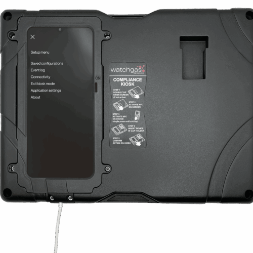 The WatchGas Compliance Kiosk works as a terminal to allow the user to check in the gas detector, providing a full overview of the device status and any unforeseen events. The WatchGas compliance Kiosk automatically sends all data to a designated software site. This provides a cost-effective overview of fleet health, predictive maintenance, events, and alarms.
